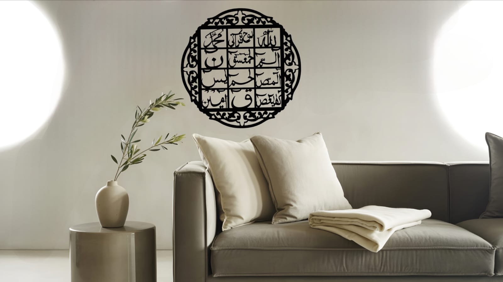 Handcrafted with reverence and precision, this elegant wall art features the mystical Muqattaʿat—the disjointed letters that open select chapters of the Qur’an. Each stroke is a tribute to the unseen meanings and spiritual depth these letters carry. Designed on eco-conscious wooden cardboard, it blends sustainability with sacred symbolism, making it a soulful centerpiece for any space.